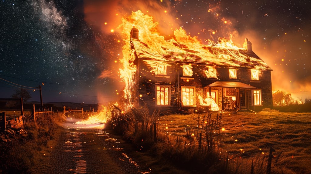 He picks up two wine glasses left on the coffee table, examines one of them for flecks of lipstick, and says, “You’re sleeping him, aren’t you – you know he burnt the place to the ground,” but I don’t answer, and so he says that silence was his lingering memory of me.