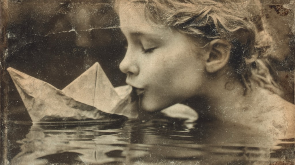 kissing a paper boat goodbye