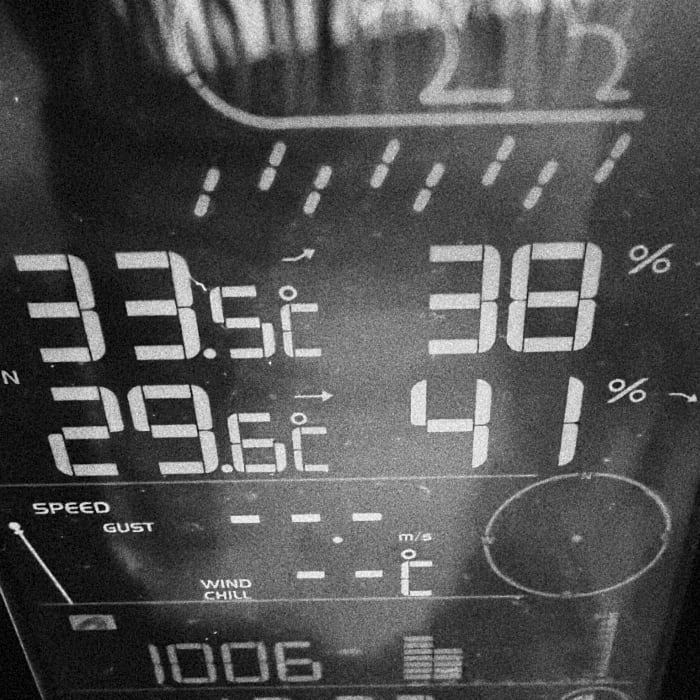 A break in the weather with a bit of welcome rain and a temperature drop of 10ºC. It was 33.5C earlier in the week.