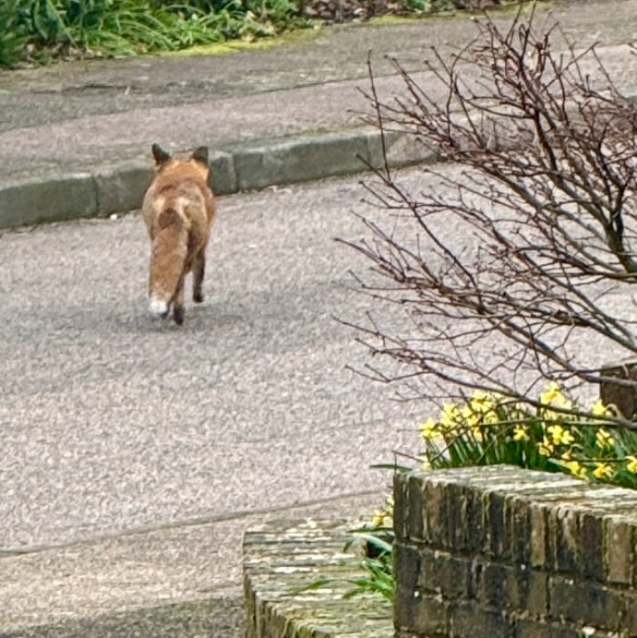 4) Thankful that I caught sight of a red fox trotting down the road. Foxes are a common sight around here.