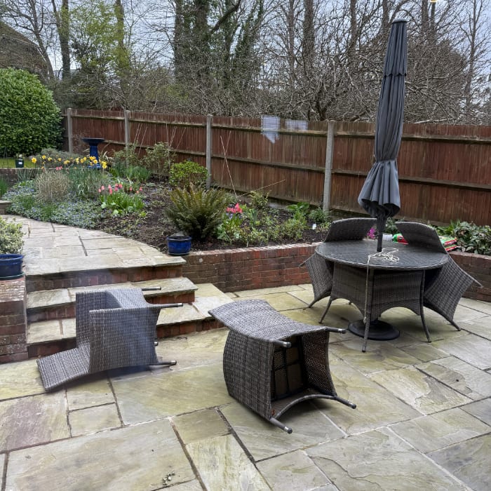 V. A storm blew through on Tuesday night; found the barbeque tongs under a bush; chairs scattered across the patio. Thankfully, no damage. Weather is so weird lately.