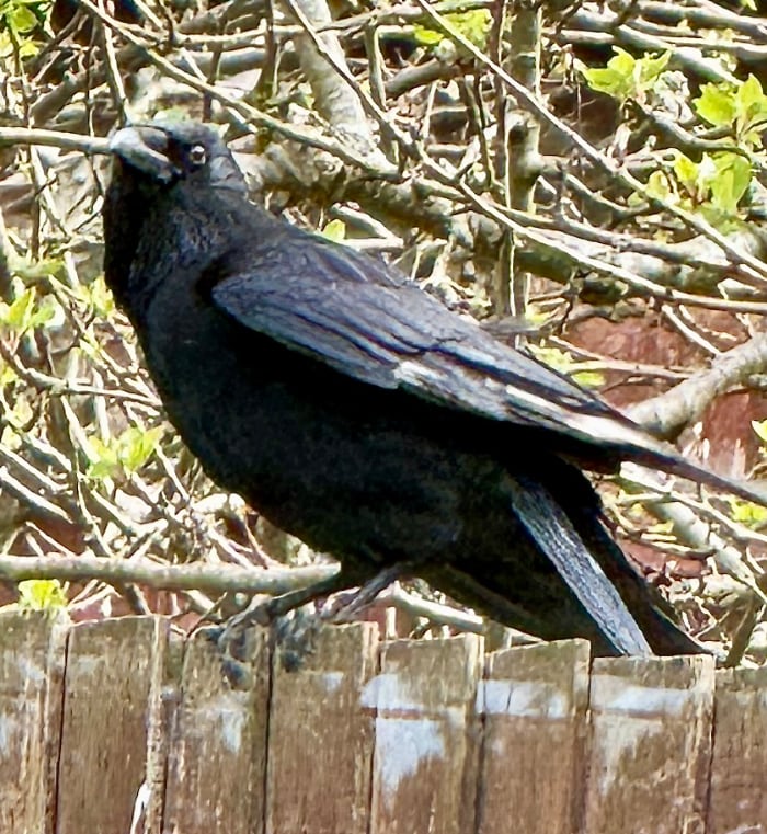 X. My crow who always makes me laugh. He’s busy with sticks this morning.